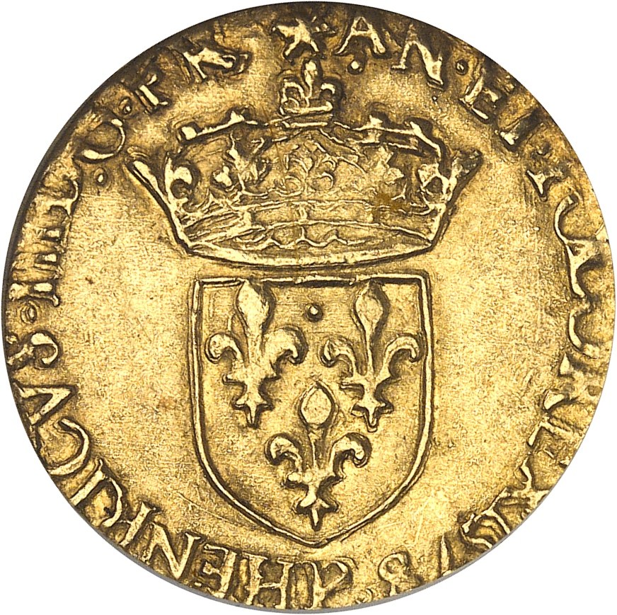 Av. (à 6 h) HENRICVS. III. D. G. FR - AN. ET. POLO. REX (date). Écu de France couronné sous un soleil, au-dessous (atelier).