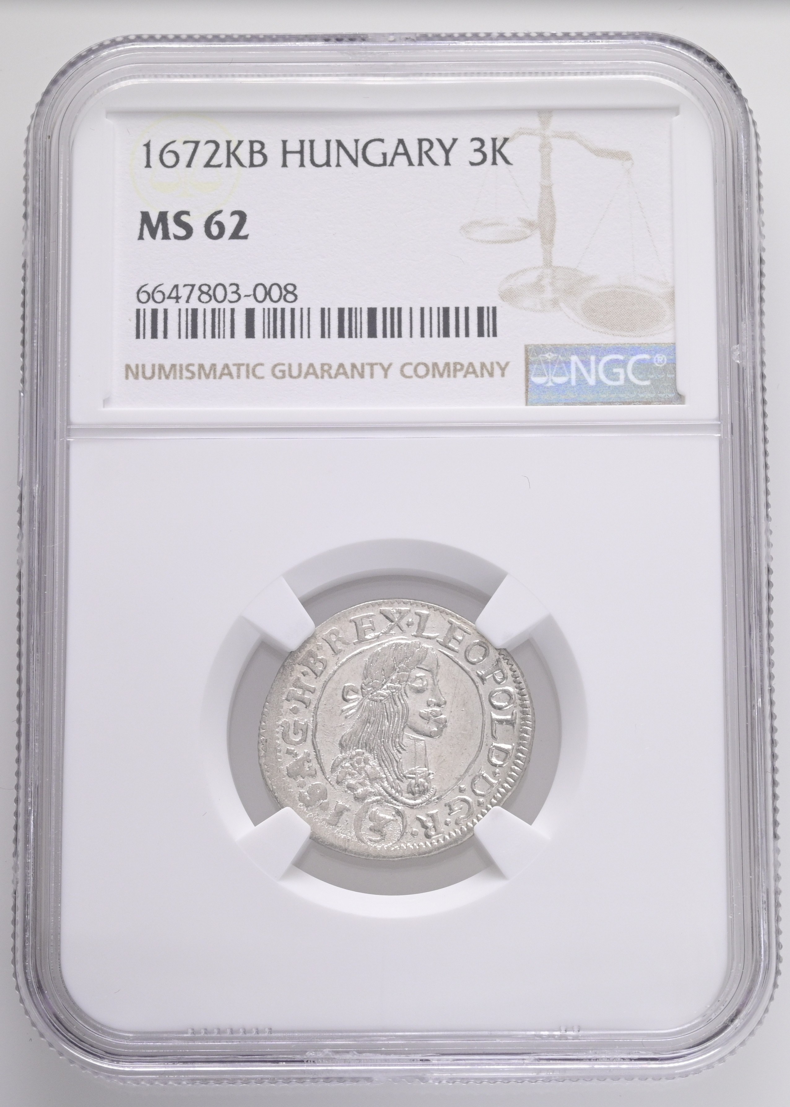 LEOPOLD I. 1657-1705 3 Kreuzers 1672 KB Kremnica KM#163, ÉH#1084 Ag. 1,95g 20,5mm NGC 6647803-008