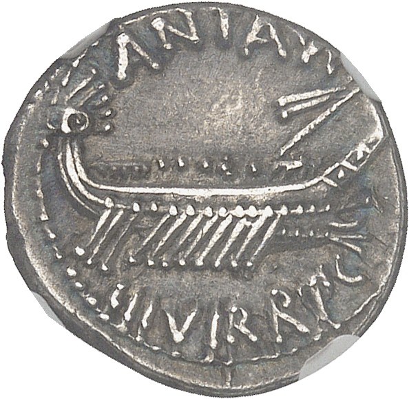 Av. ANT AVG / III VIR R P C. Galère à droite.