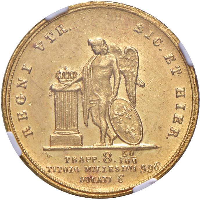 NAPOLI Ferdinando II (1830-1859) 6 Ducati 1852 - Nomisma 904 AU RR In slab NGC MS 62 8234021-010. Top pop, miglior esemplare certificato NGC. Ottima conservazione per questo tipo di moneta!