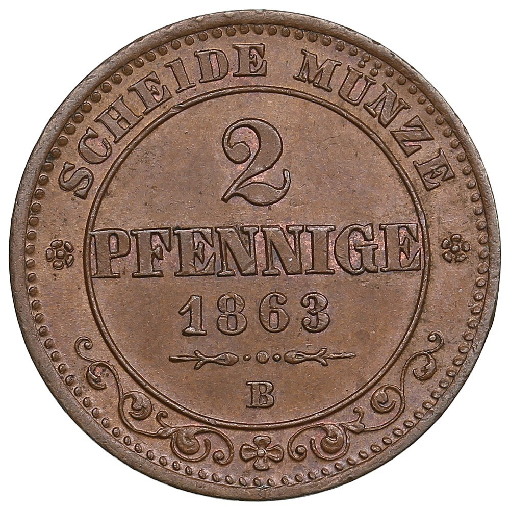 German States, Kingdom of Saxony, Albertinian Line (Dresden) 2 Pfennige 1863 - Johann I (1854-1873)