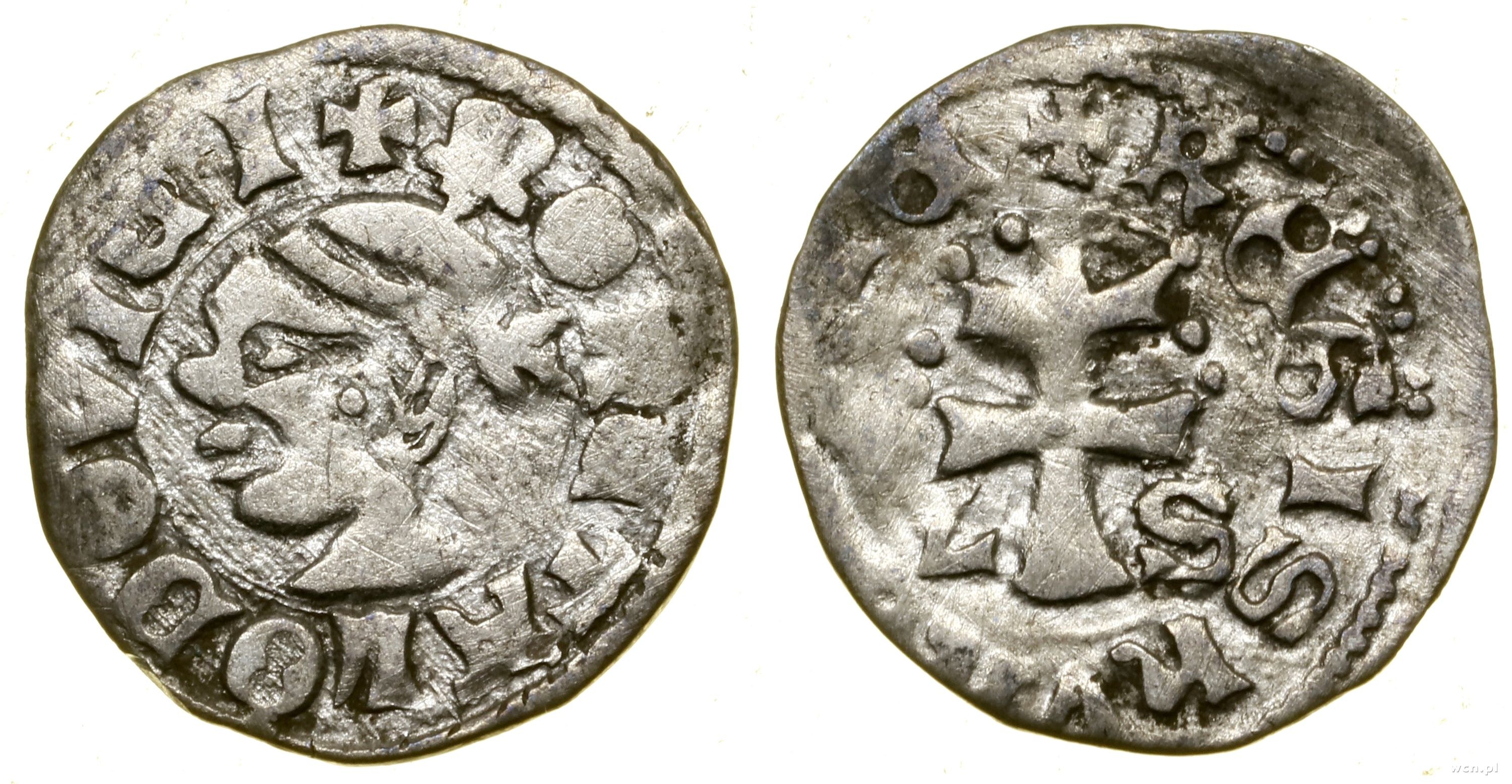 Aw: Głowa Saracena w lewo, + MONETA LODOVICI; Rw: Podwójny krzyż, po bokach litery L - S, + REGIS HVNGARIE