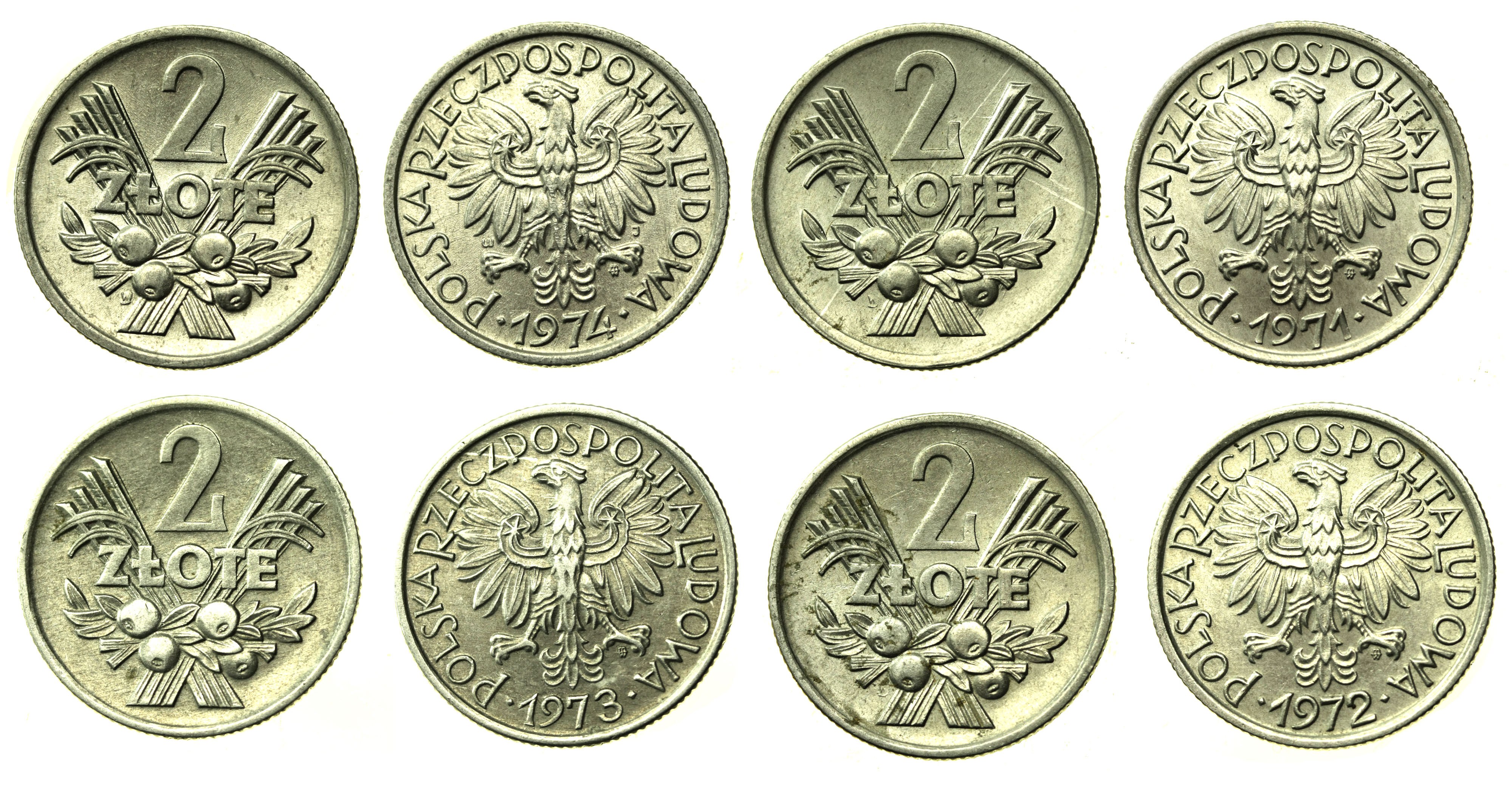PRL, zestaw 2 złote 1971, 1972, 1973, 1974 Jagody. Razem 4 szt. Stan zachowania 1-/2+.