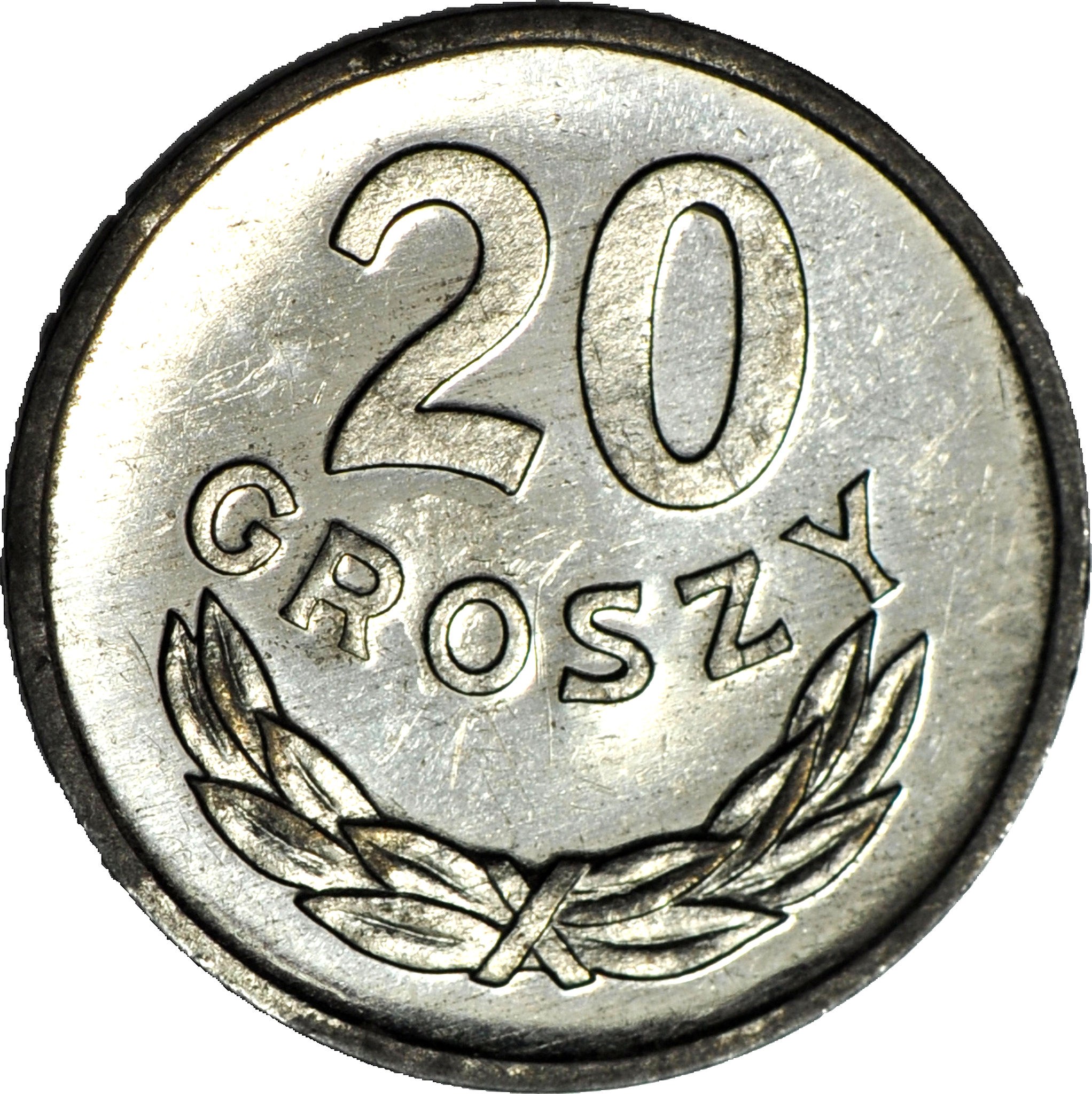 RR-, 20 groszy 1977, PROOFLIKE (rocznik nie ma zestawów lustrzanych)