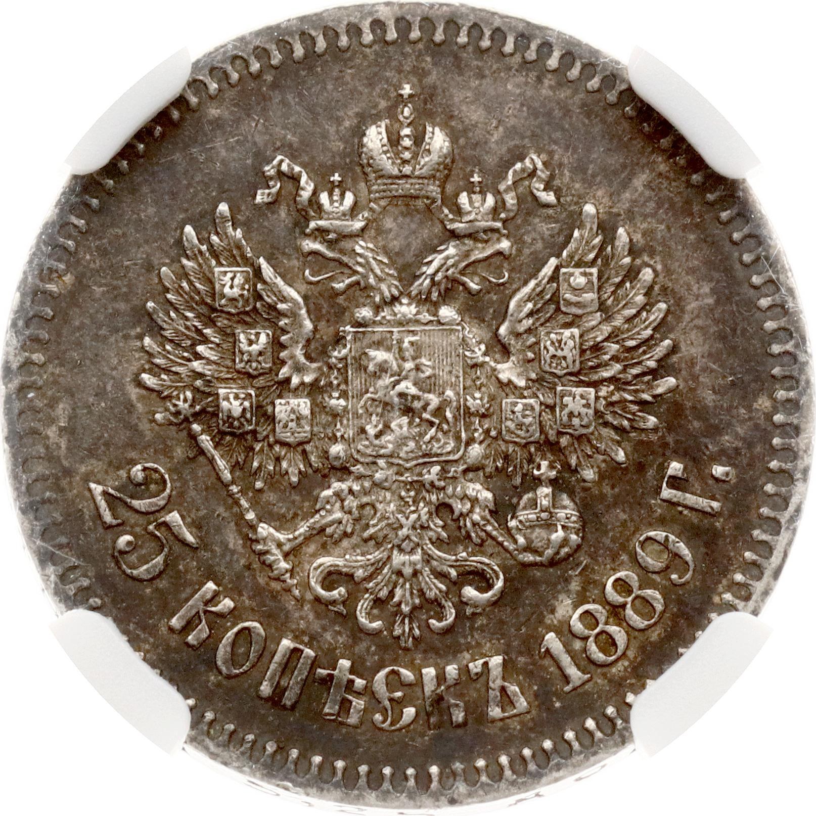 Russia 25 Kopecks 1889 АГ(R2) NGC AU 53