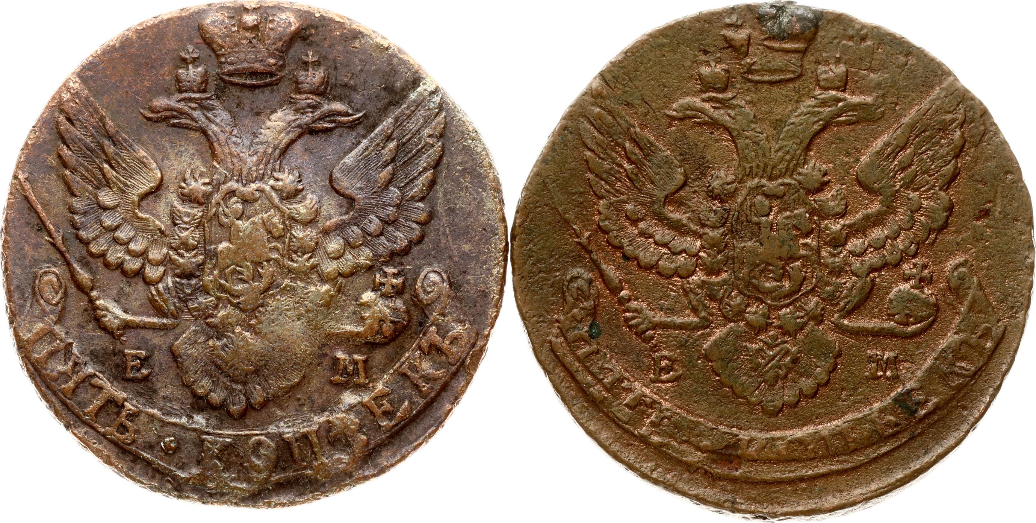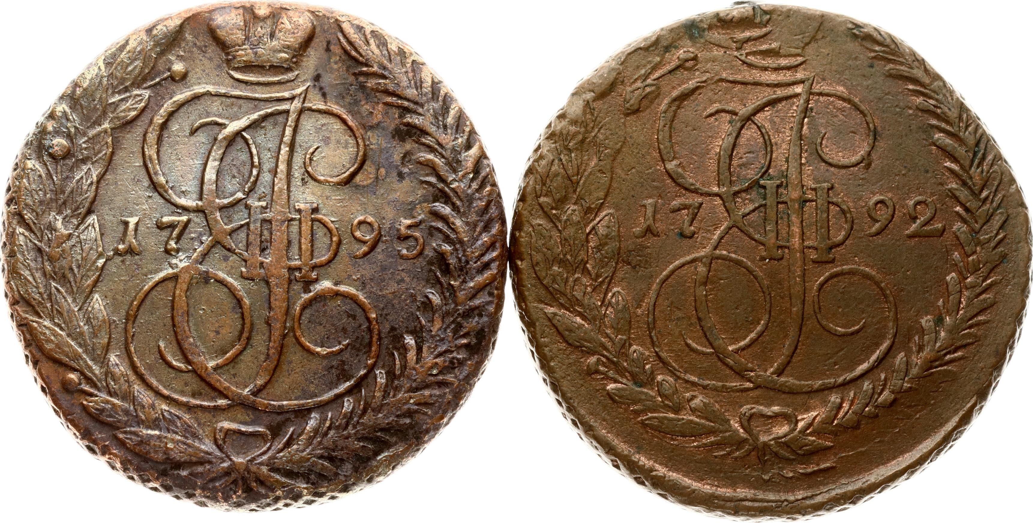 Russia 5 Kopecks 1792 ЕМ & 1795 EM Lot of 2 coins