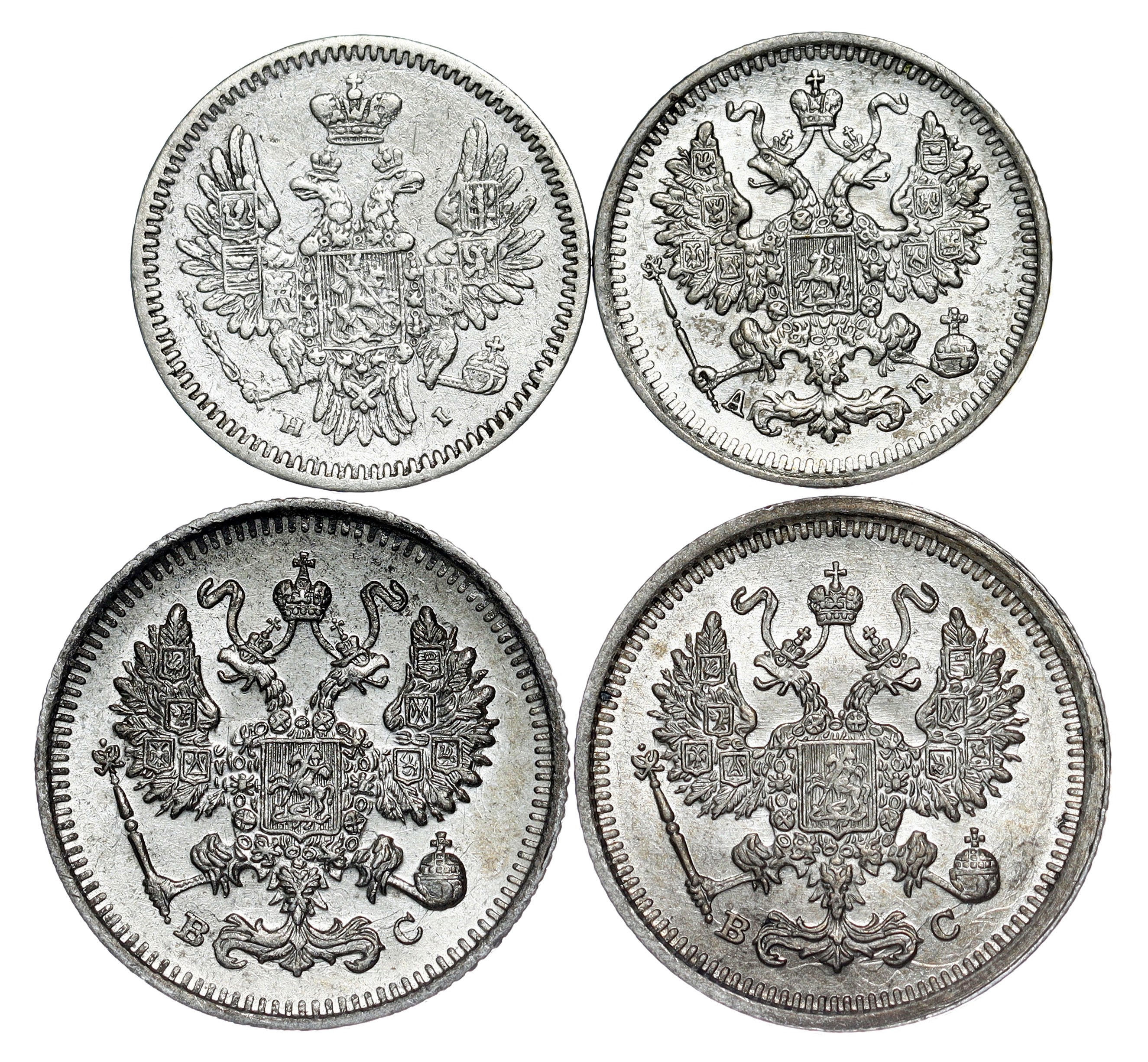 Russland - Alexander II & Nikolaus II., 5, 10 Kopeken LOT - 4 pcs