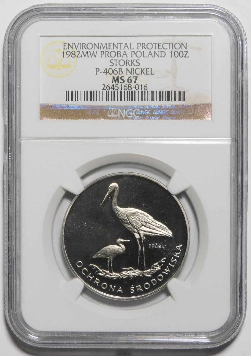 PRÓBA NIKIEL 100 złotych 1982 Ochrona Środowiska - Bociany