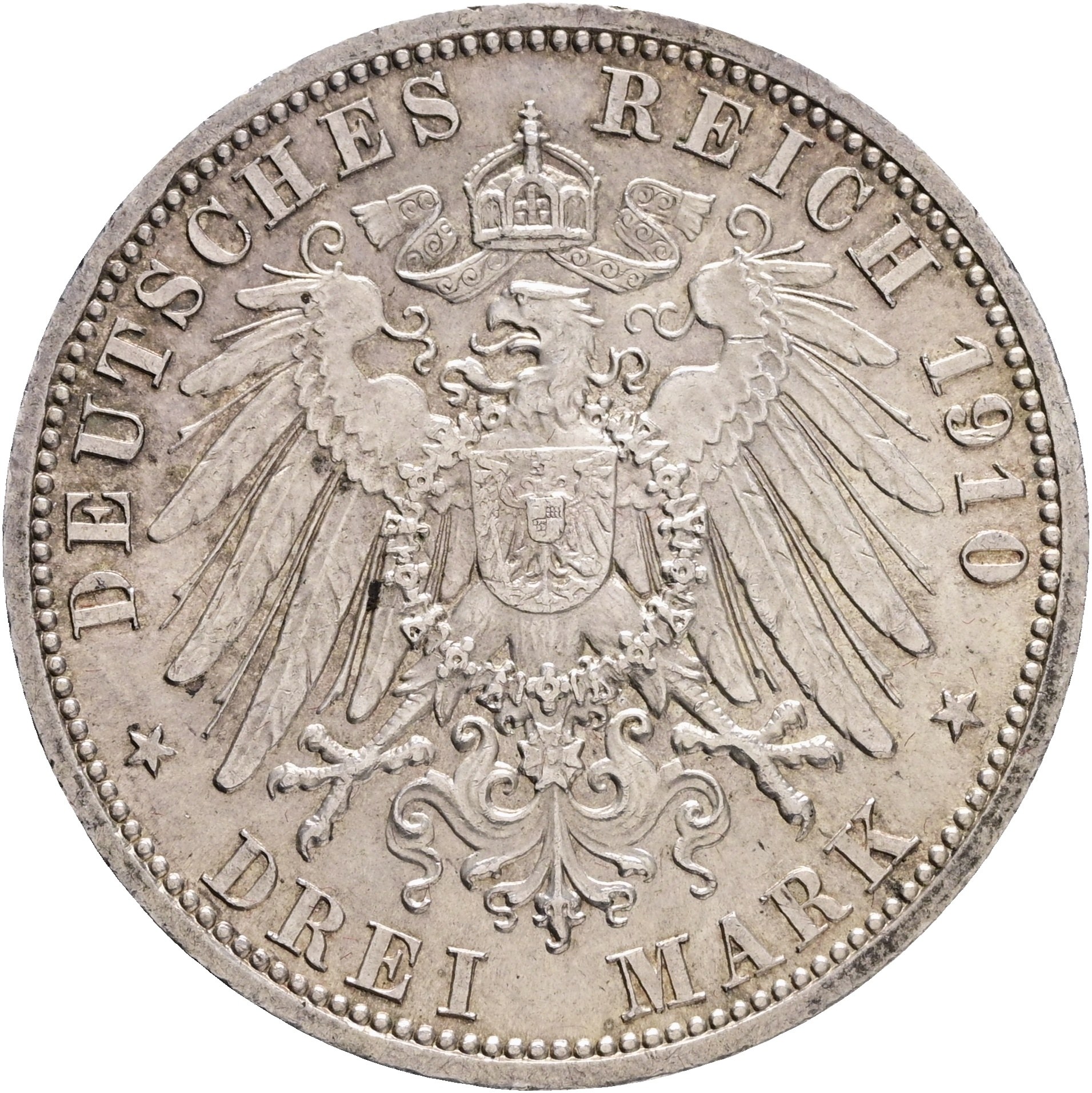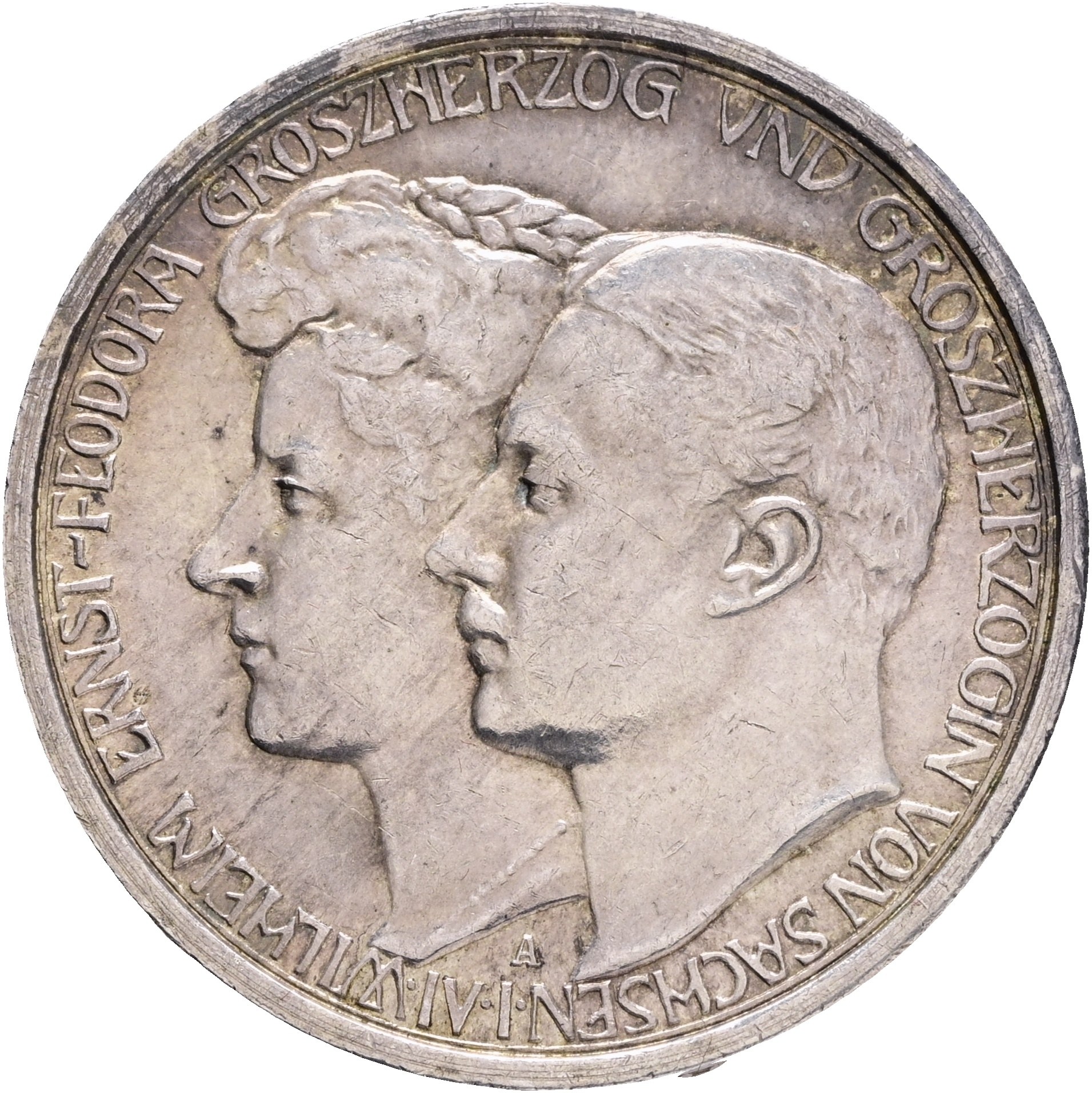 Saxe-Weimar-Eisenach 3 Mark 1910 A Groszherzog WILHELM ERNST and FEODORA second marriage