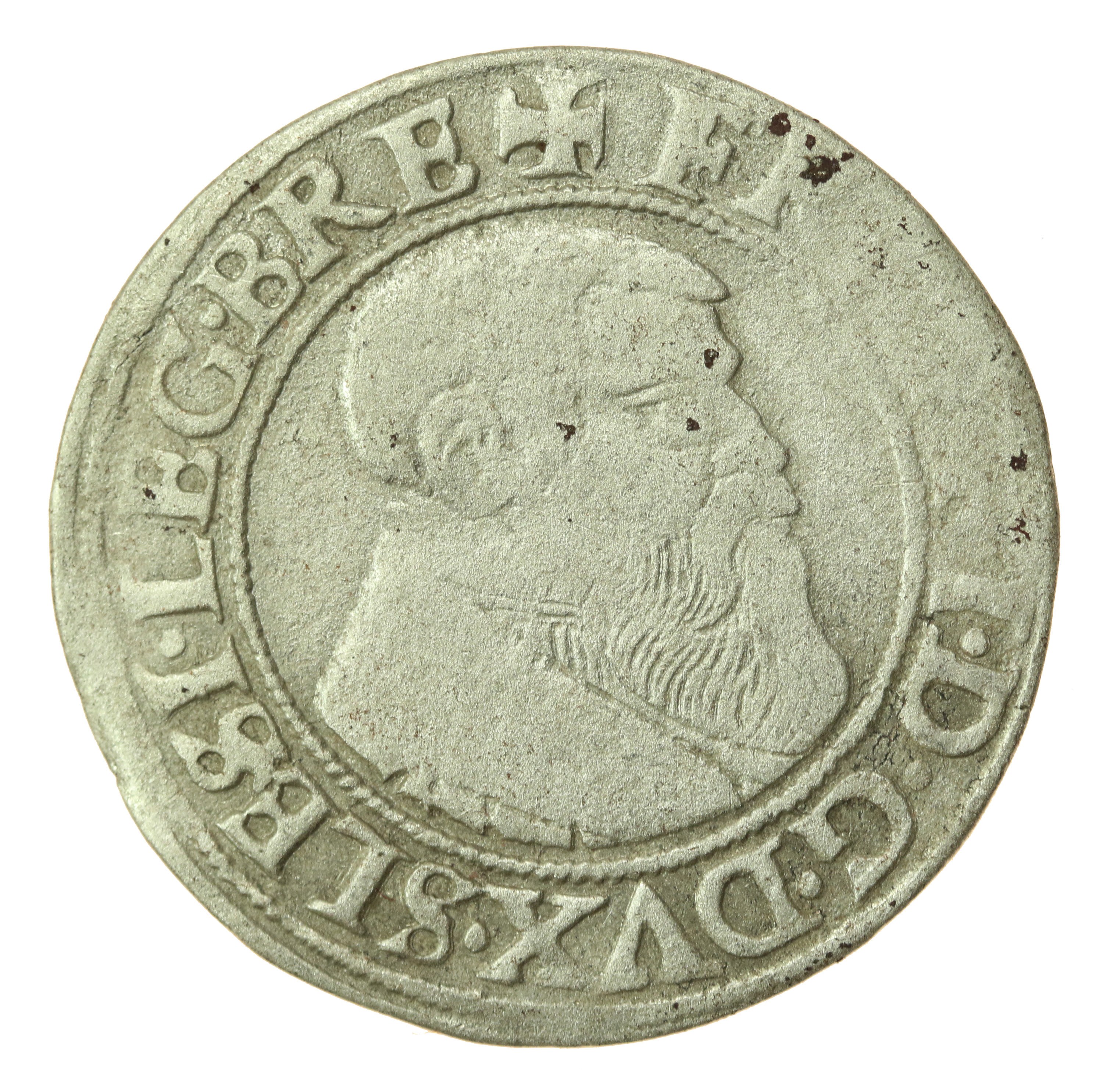 Śląsk, Księstwo Legnicko-Brzesko-Wołowskie, Fryderyk II, Grosz 1542, Legnica. Stan 3. Poprawnie zachowany egzemplarz. Literatura: Kopicki 4920 (R)