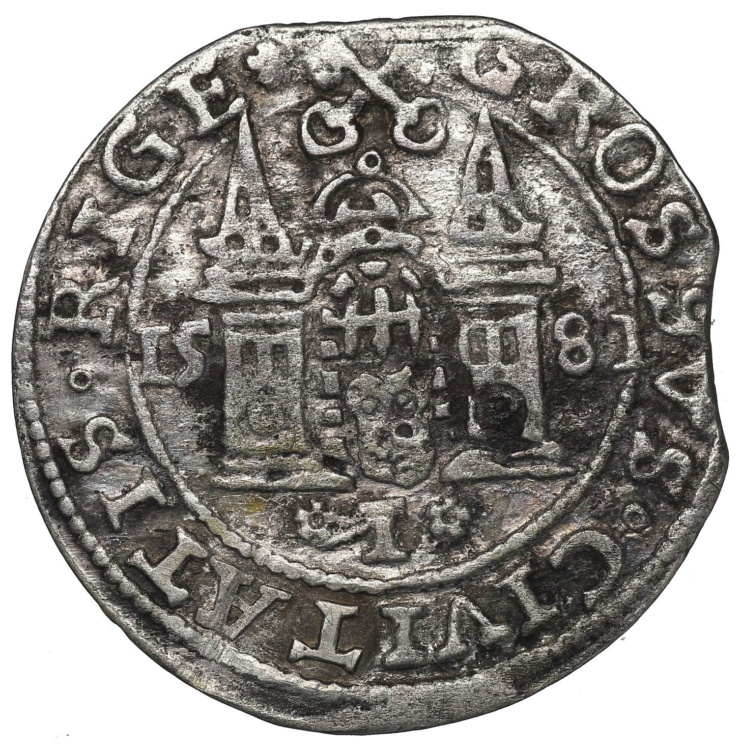 Odmiana z pełną datą przy herbie miasta i końcówką legendy RIGE.