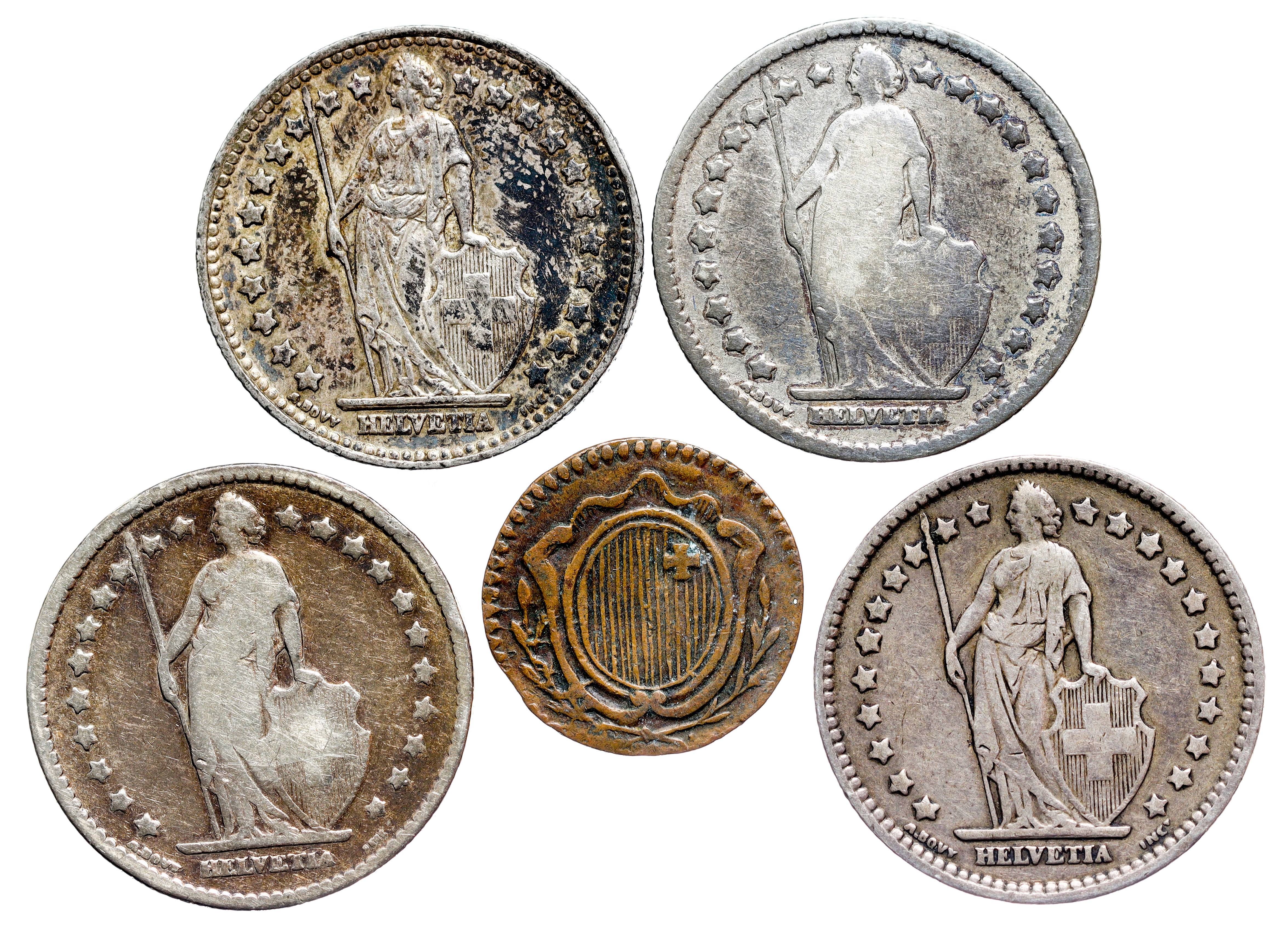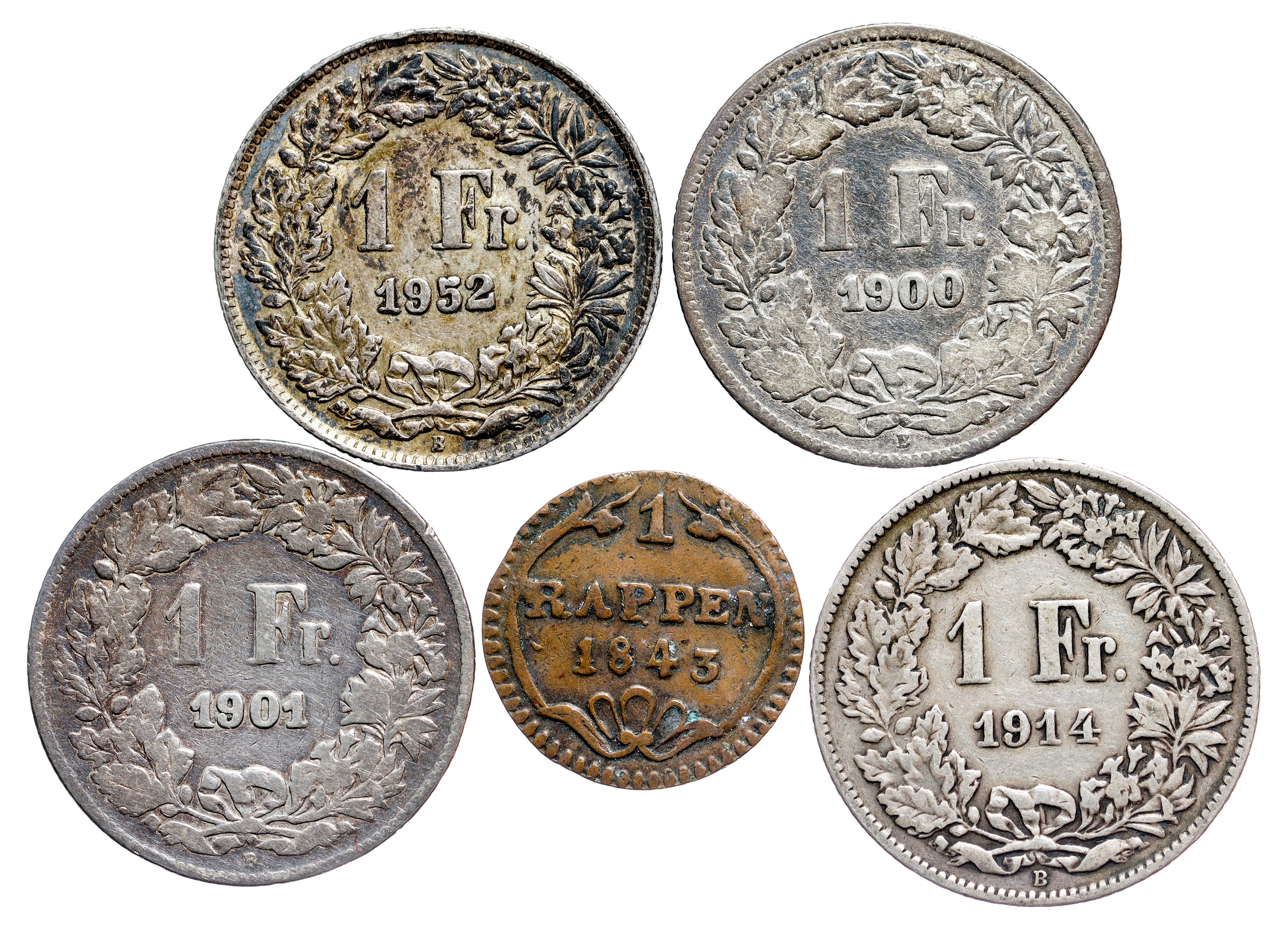 Switzerland – 1 Franc, 1 Rappen LOT – 5 pcs
