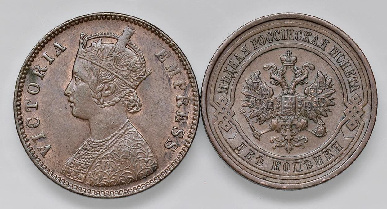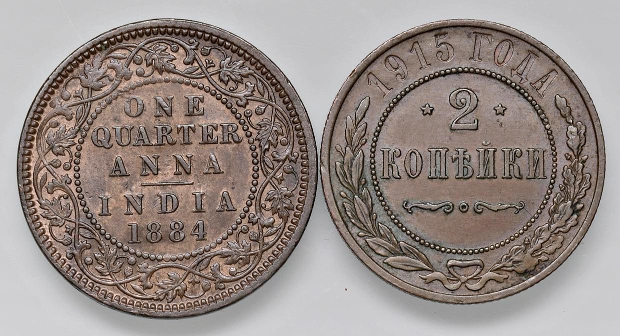 Foreign coins - RUSSIA Nicola II (1894-1917) 2 Copechi 1915 - Bitkin 245 CU(g 6,50) In lotto con One Quarter Anna 1884