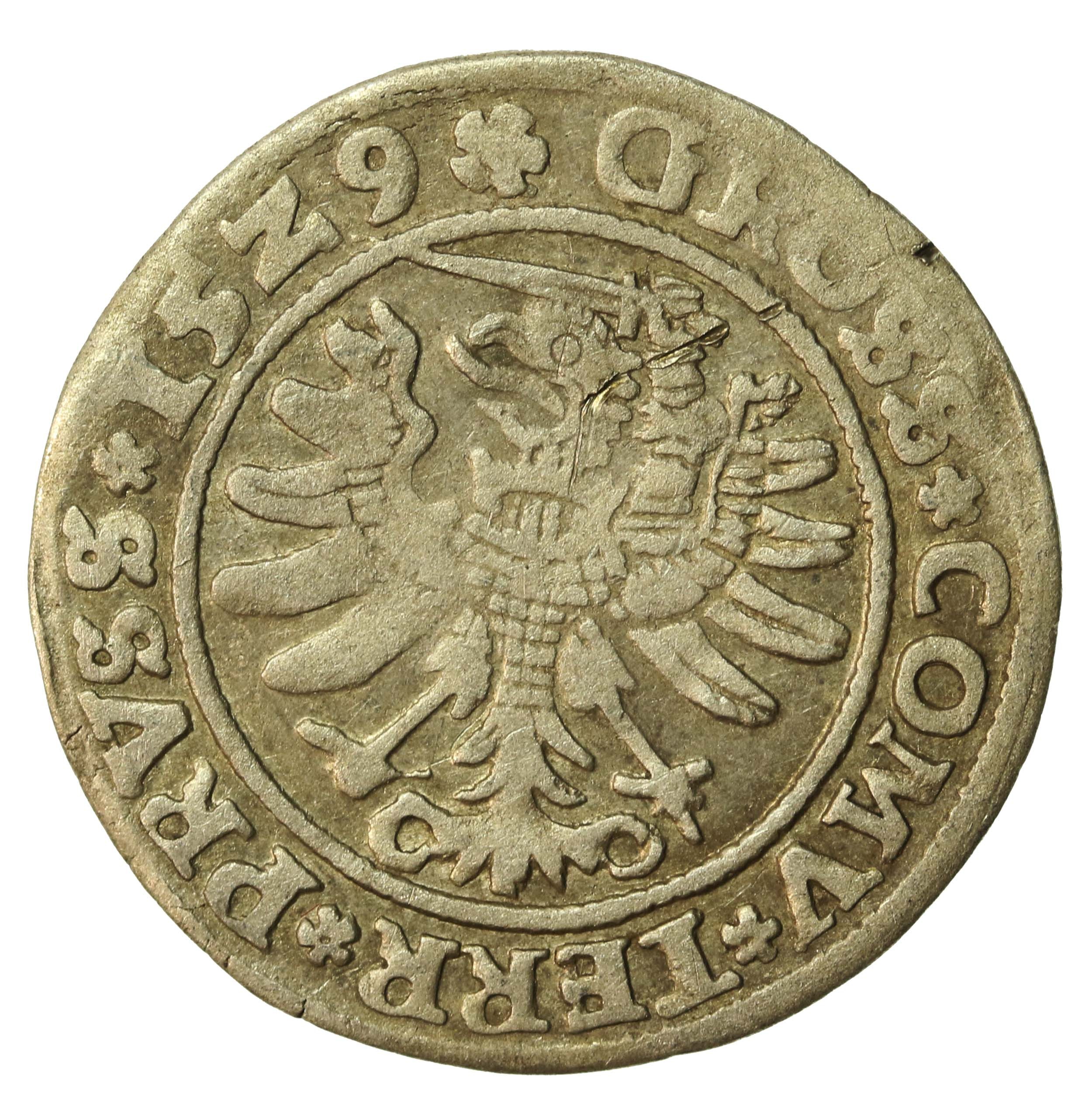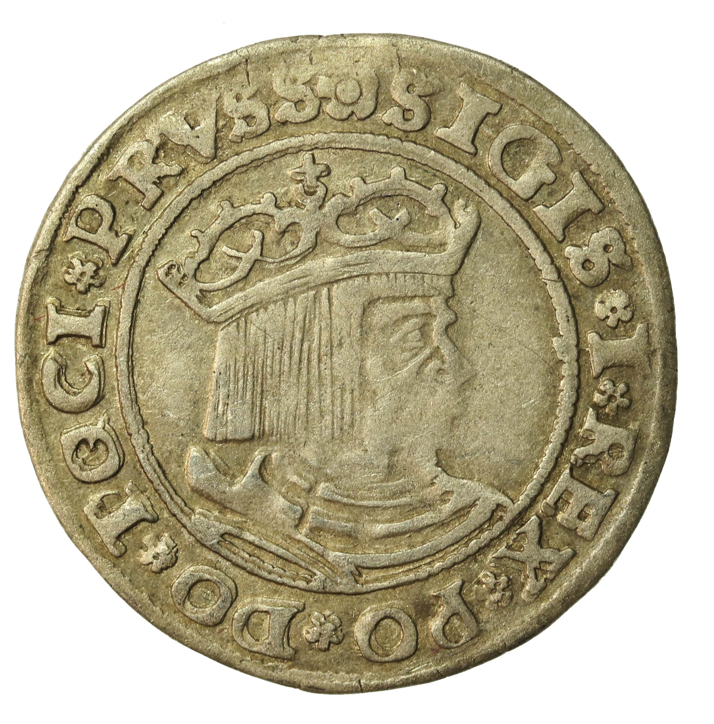 Zygmunt I Stary, Grosz 1529, Toruń, PRVSS/PRVSS. Odmiana z końcówkami legend PRVSS/PRVSS. Stan zachowania 3+/2-. Dobrze zachowana moneta patyną. Literatura: Kopicki 3083