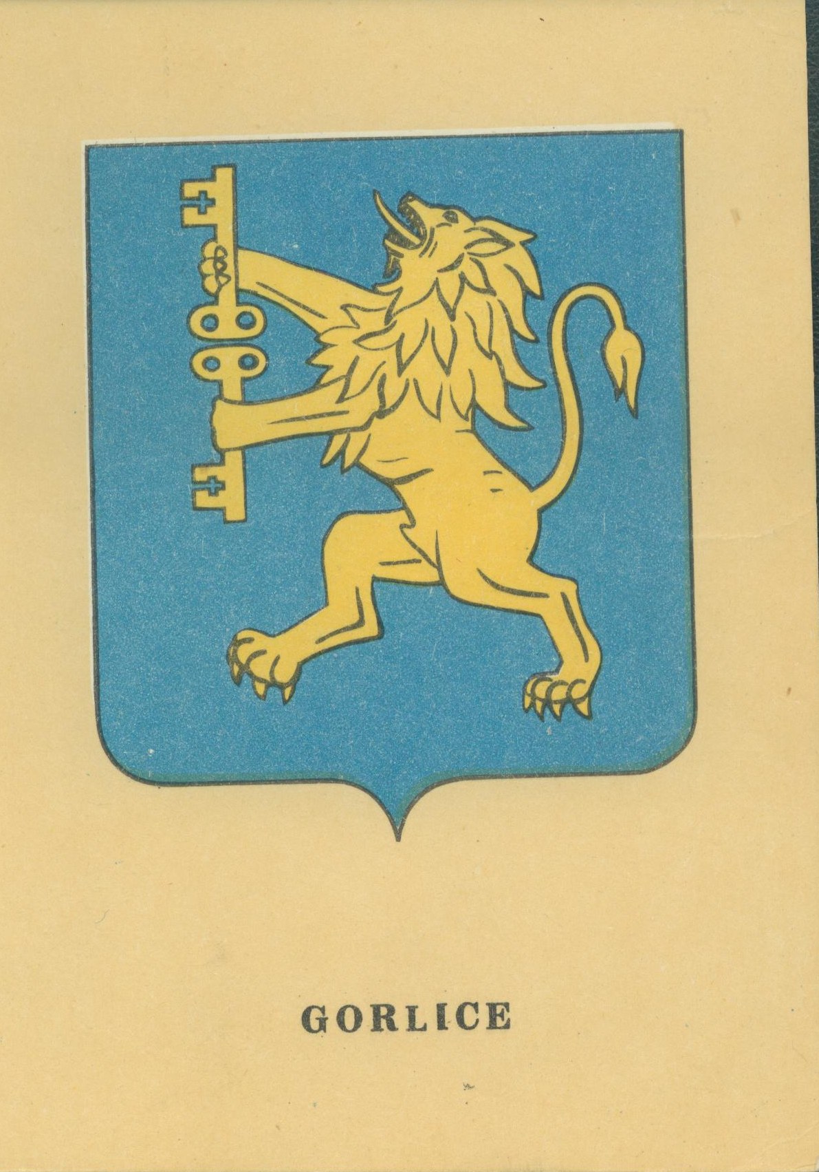 GORLICE – herb miasta, opr. graf. St. Chrapkowski, lit. kol., ok. 1950,