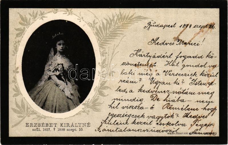 1898 Erzsébet királyné (Sissi) gyászlapja 1837-1898. Rigler József Ede r.t. ...