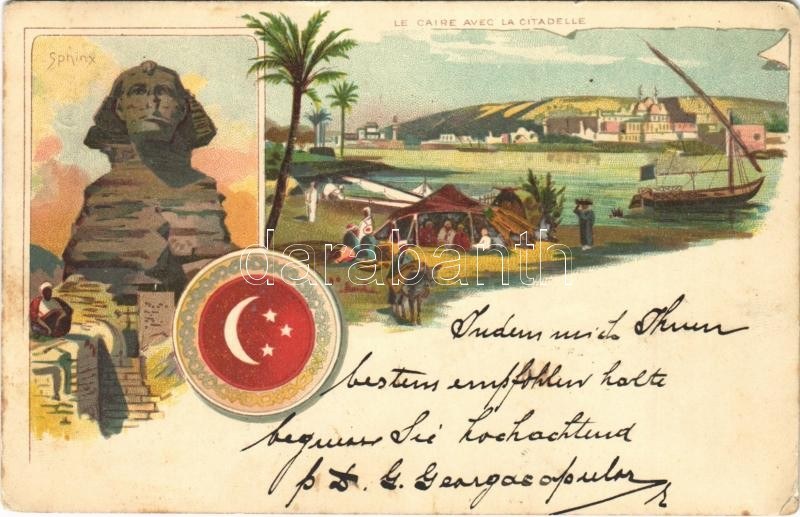 1898 (Vorläufer) Cairo, Kairo; Sphinx, Le Caire avec la Citadelle. Art Nouveau, litho (EK)