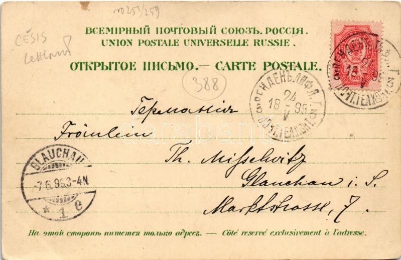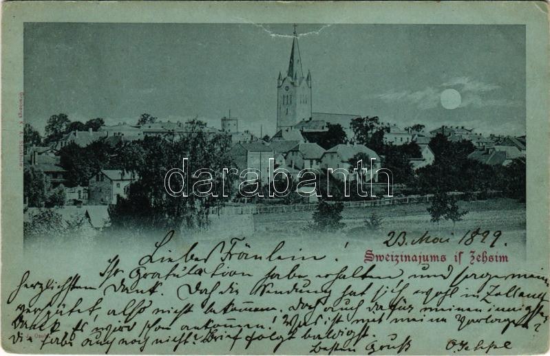 1899 Cesis, Wenden, Zehsim; general view with church, at night in moonlight (crease)