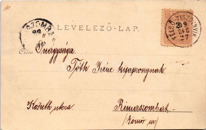 1899 Losonc, Lucenec; Kubinyi tér, Fogel Mátyás, Redlinger Ignác üzlete és saját kiadása / square, shops, monument (fl...