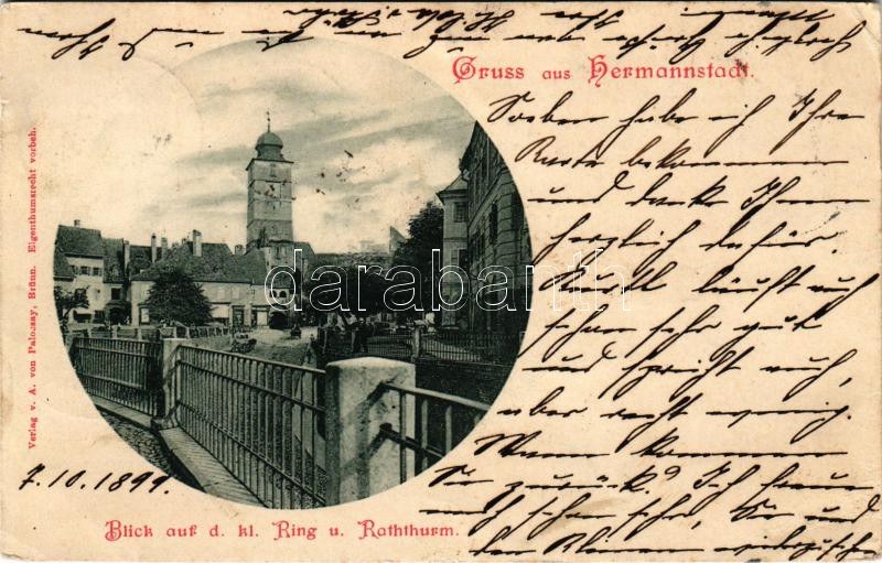 1899 Nagyszeben, Hermannstadt, Sibiu; Blick auf d. kl. Ring u. Raththurm / Várostorony. A. von Palocsay / tower (EB)