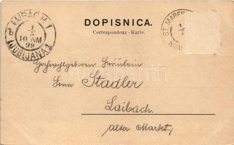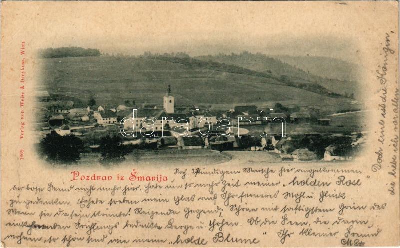 1899 (Vorläufer) Smarje-Sap, Sankt Marein; Weiss & Dreykuss (Wien) / general view, church (EB)