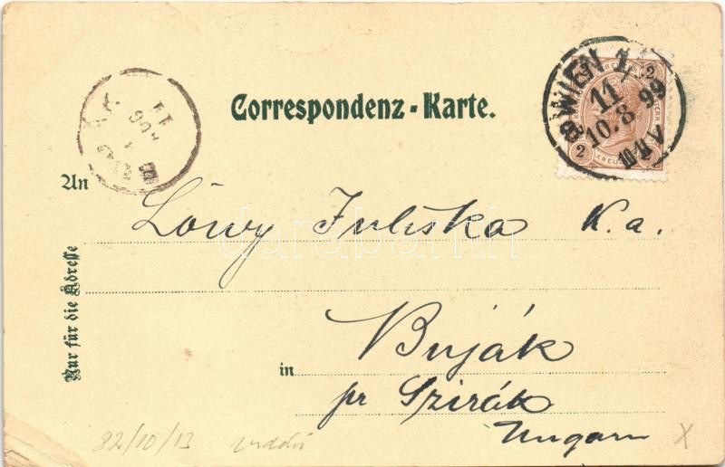 1899 (Vorläufer) Wien, Vienna, Bécs XIX. Leopoldsberg, Kahlenberger. Moritz Brock Art Nouveau, litho (tear)