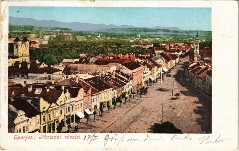 1900 Eperjes, Presov; Fő utca, üzletek. Cattarino Sándor kiadása / general view, shops (EB)