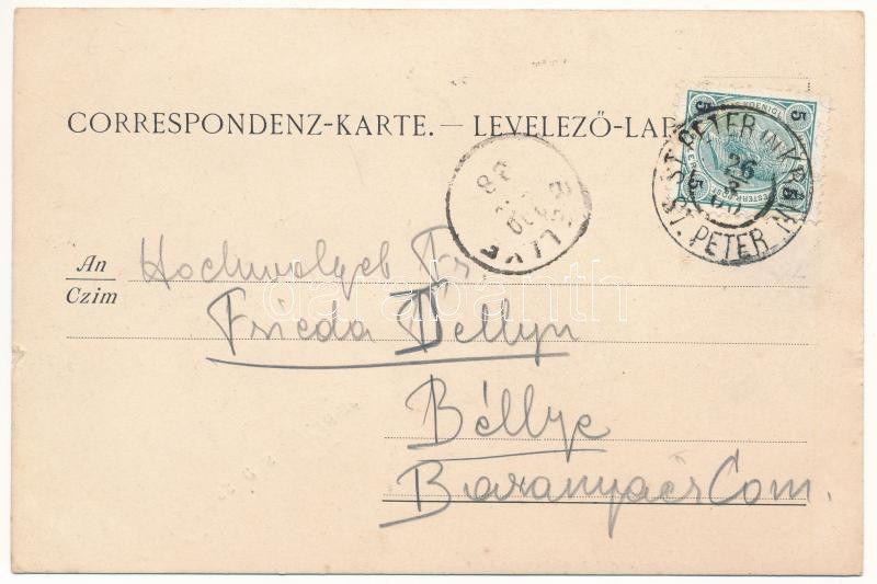 1900 Gruss aus Fiume, Das Denkmal der Gefallenen auf der Insel Lissa. A. Reinhard. K.u.K. Kriegsmarine / Osztrák-maggyar haditengerészeti emlékmű Vis-ben / Austro-Hungarian Navy heroes monument in Vis. Art Nouveau, floral s: R. Hoch