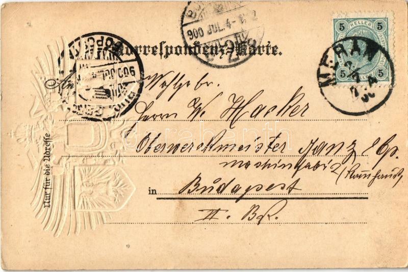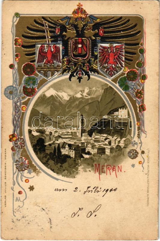 1900 Merano, Meran (Südtirol); Julius Scheibein Art Nouveau, embossed, coat of arms litho (EK)