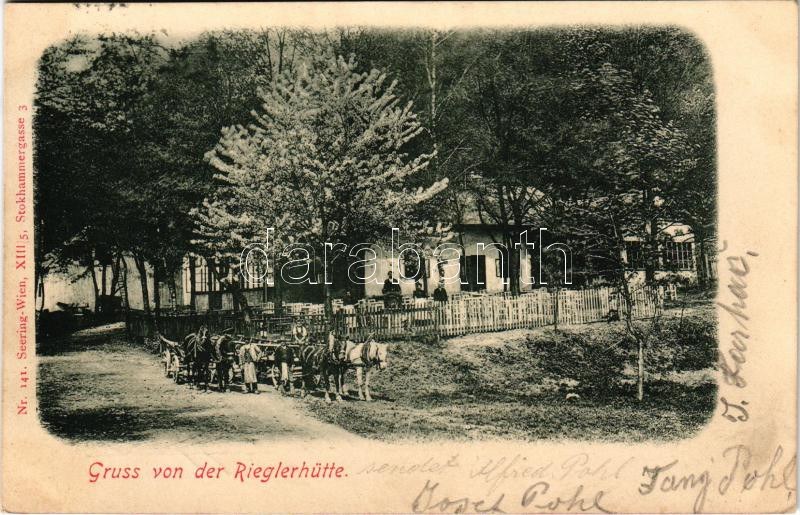 1900 Wien, Vienna, Bécs; Gruss von der Rieglerhütte (Penzing) / inn and tourist house, restaurant, horse-drawn carriages (EK)