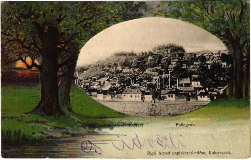 1901 Kolozsvár, Cluj; Fellegvár. Szecessziós litho montázs erdővel, Rigó Árpád kiadása / Cetatuia. Art Nouveau montage with forest, litho