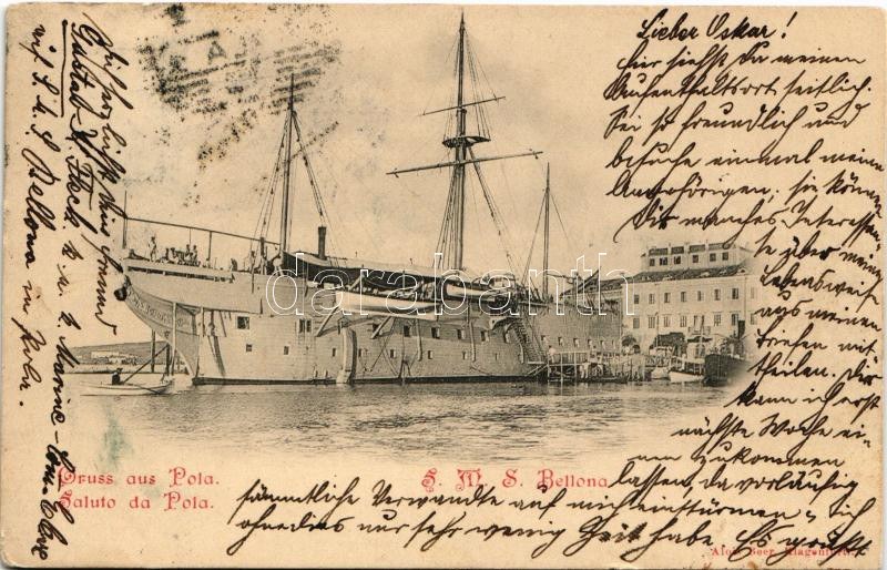 1901 Pola, SMS Bellona az Osztrák-Magyar Haditengerészet uszály laktanyája (ex SMS Kaiser) / K.u.K...