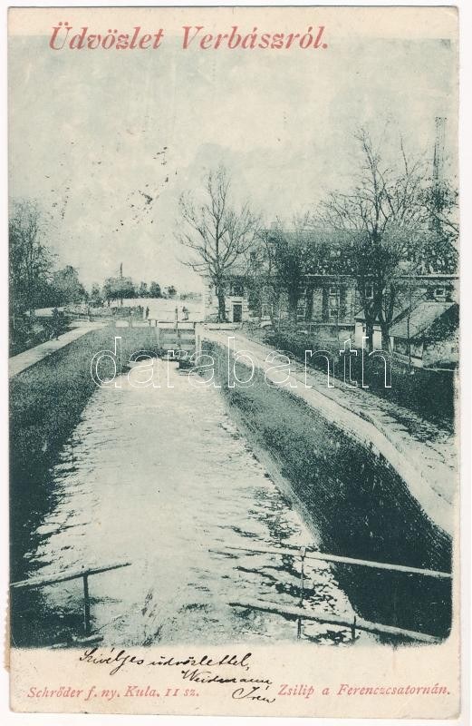 1901 Újverbász, Verbász, Novi Vrbas; zsilip a Ferenc-csatornán. Schröder kiadása / canal, flood gate (vágott / cut)