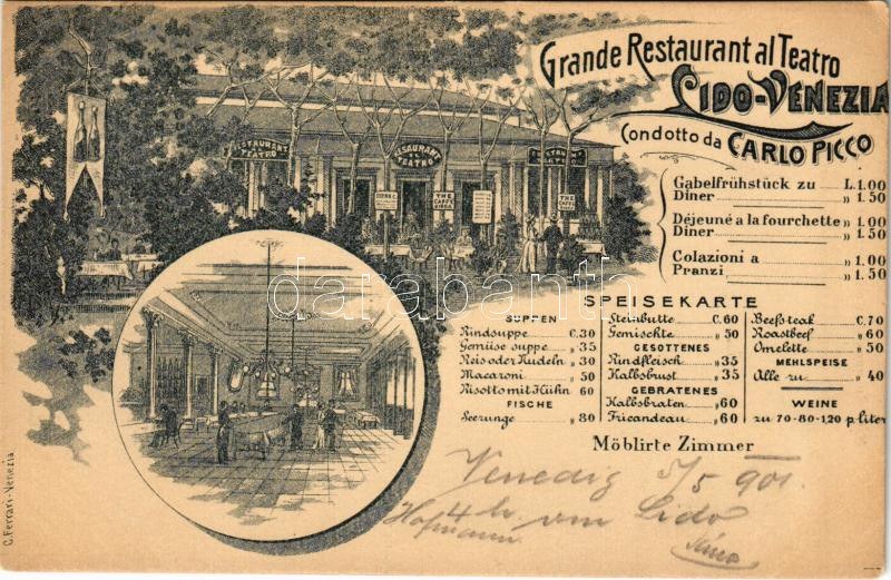 1901 Venezia, Lido, Grande Restaurant al Teatro Lido-Venezia Condotta da Carlo Picco, Speisekarte. C. Ferrari ...