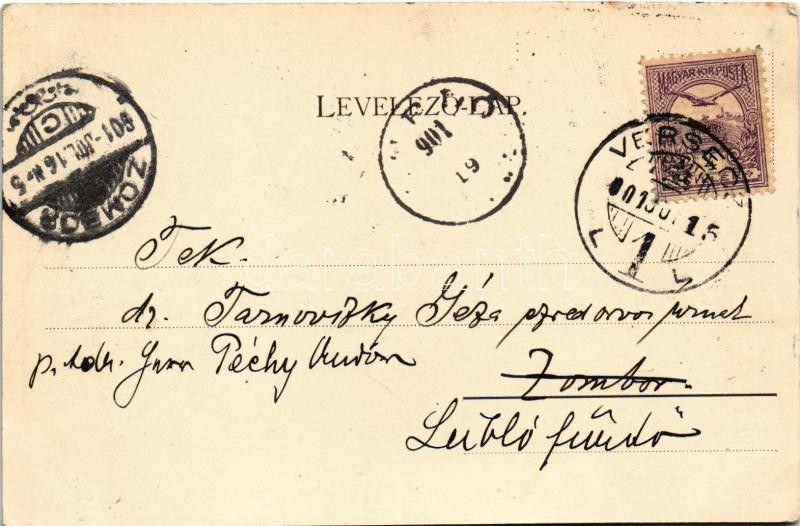 1901 Versec, Werschetz, Vrsac; Városliget utca B., posta és távirda. Wilhelm Wettl kiadása / street...