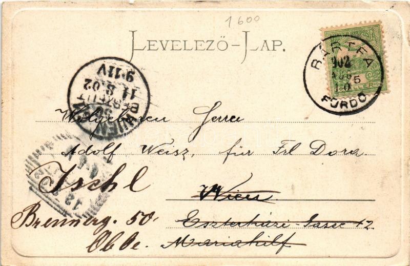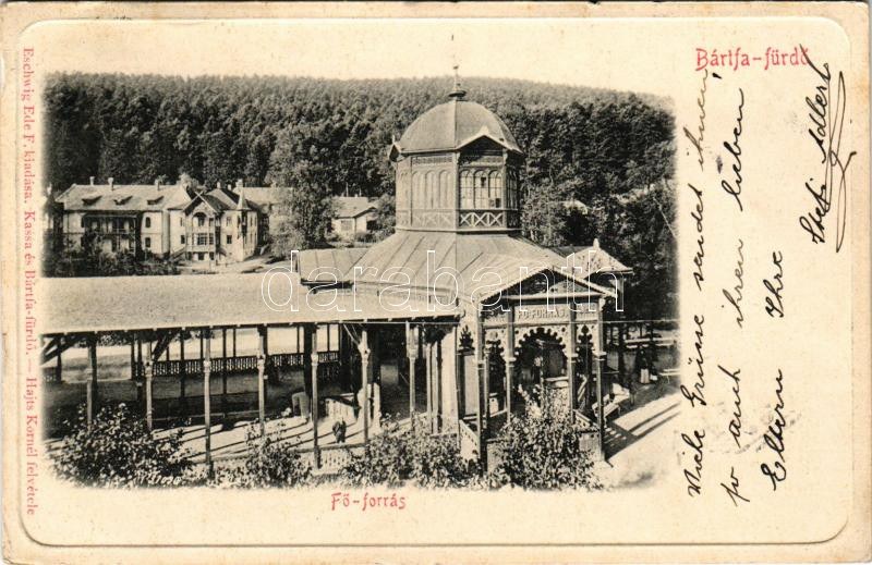 1902 Bártfa-fürdő, Bardejovské Kúpele, Bardiov, Bardejov; Fő forrás. Eschwig és Hajts kiadása. Hajts Kornél felvétele ...