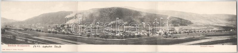 1902 Korompa, Krompach, Krompachy (Szepes); vasgyár. Balkányi S. kiadása, 3-részes kihajtható panorámalap / ironworks...