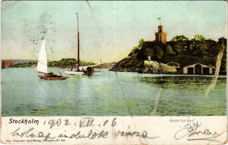 1902 Stockholm, Kastellholmen. Axel Eliassons Konstförlag No. 316. / island, sailing boat (EB)