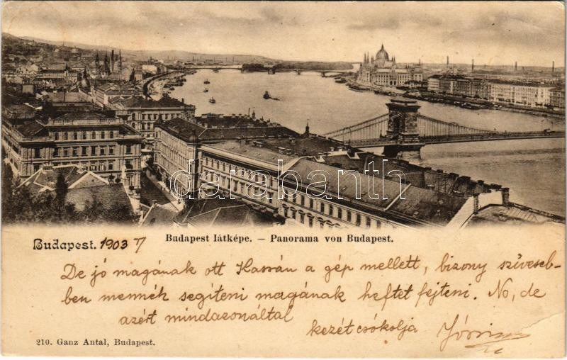 1903 Budapest I. Látkép, Lánchíd. Ganz Antal 210. (EB)