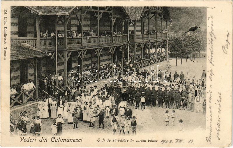1903 Calimanesti, Calimanesci (Vrancea); O di de sarbatóre in curtea bailor / celebration in the spa hotel yard (Rb)