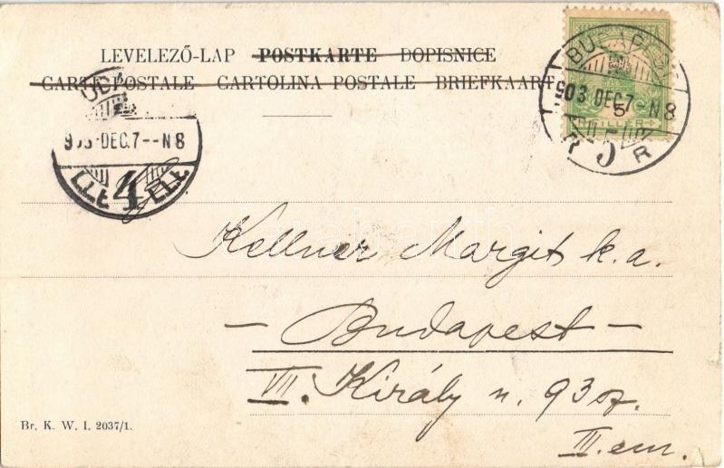 1903 Krampusz hölgy virgáccsal / Krampus lady. Br. K.W.I. 2037/1. s: M.R. (?) (apró szakadások / tiny tears)