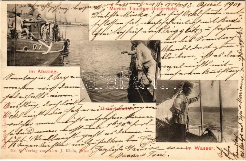 1904 K.u.K. Kriegsmarine Marine Taucher Unterricht, Im Abstieg, Untertauchen, Im Wasser. Nr. 81. Alex J. Klein