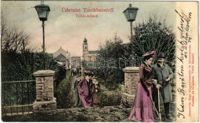 1904 Törökbecse, Újbecse, Novi Becej; Töltés feljáró. Jovanovits Giga kiadása, montázs hölgyekkel és urakkal ...