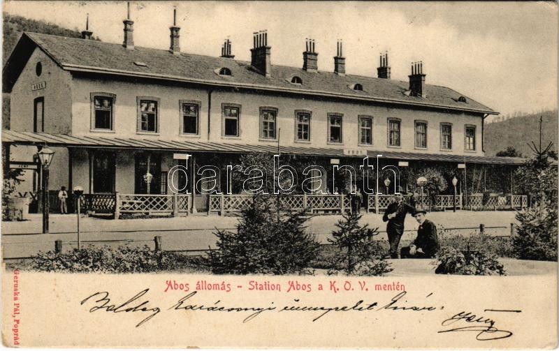 1905 Abos, Obisovce; vasútállomás a K.O.V. (Kassa-Oderbergi Vasút, KsOD) mentén. Geruska Pál kiadása ...