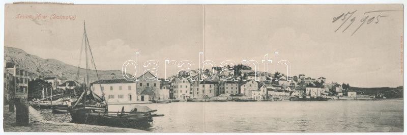 1905 Hvar, Lesina; 2-részes kihajtható panorámalap / 2-tiled folding panoramacard (fl)