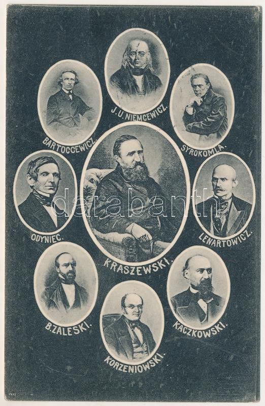 1906 Józef Ignacy Kraszewski, Julian Ursyn Niemcewicz, Władysław Syrokomla, Teofil Lenartowicz, Zygmunt Kaczkowski, Józef Korzeniowski, Bohdan Zaleski, Antoni Edward Odyniec, Julian Bartoszewicz - Tableau of Polish writers / Lengyel írók