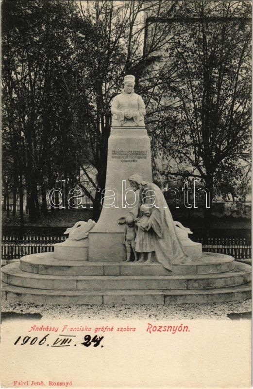 1906 Rozsnyó, Roznava; Andrássy Franciska grófné szobra. Falvi Jenő kiadása / statue, monument (EK...