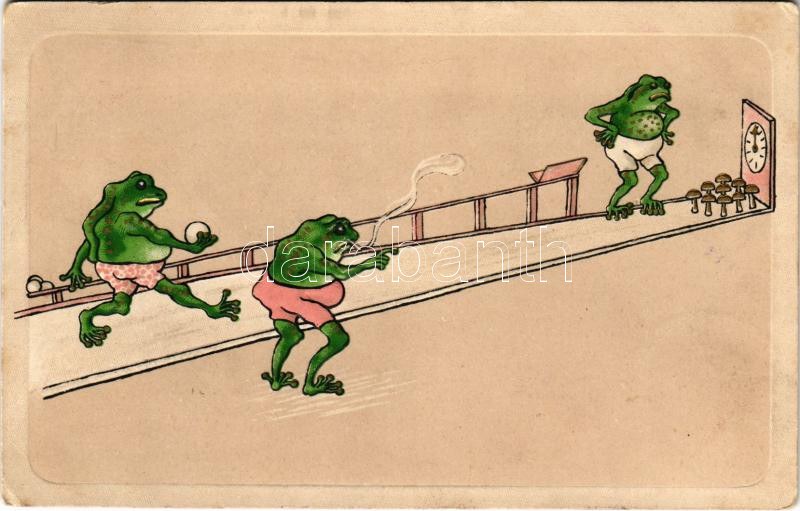 1906 Smoking frogs playing bowling. Emb. litho (EK)