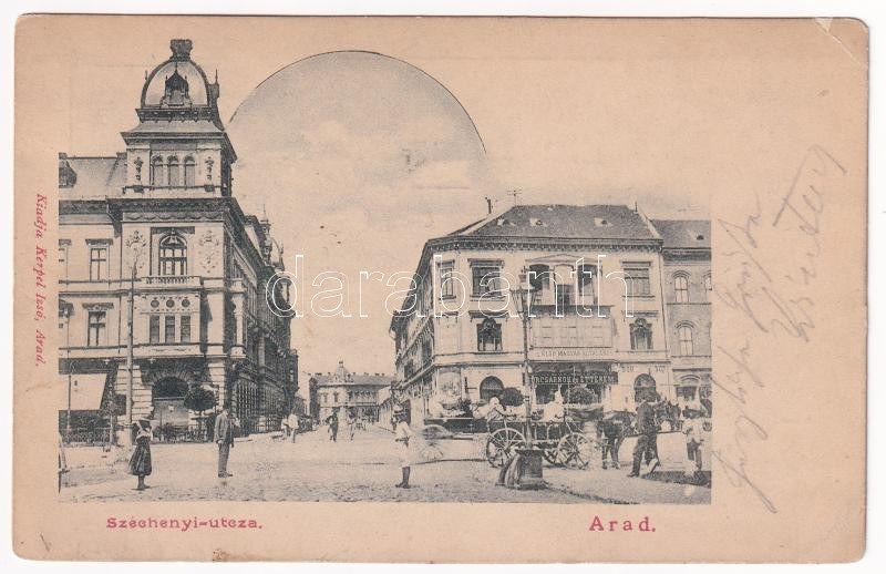 1907 Arad, Széchenyi utca, Első Magyar Általános Biztosítótársaság, sörcsarnok és étterem. Kerpel Izsó kiadása / street view, insurance company, beer hall and restaurant (EK)