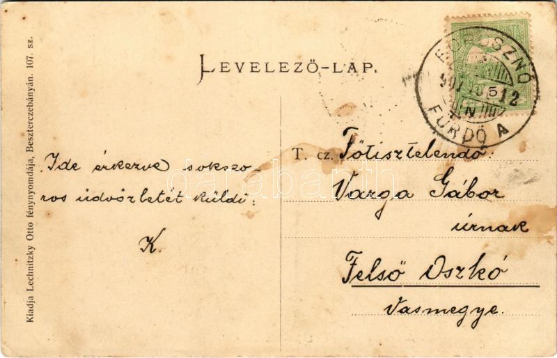 1907 Borosznófürdő, Brusno-kúpele (Borosznó, Brusznó, Brusno); Lajos lak. Lechnitzky Otto fénynyomdája kiadása / villa ...